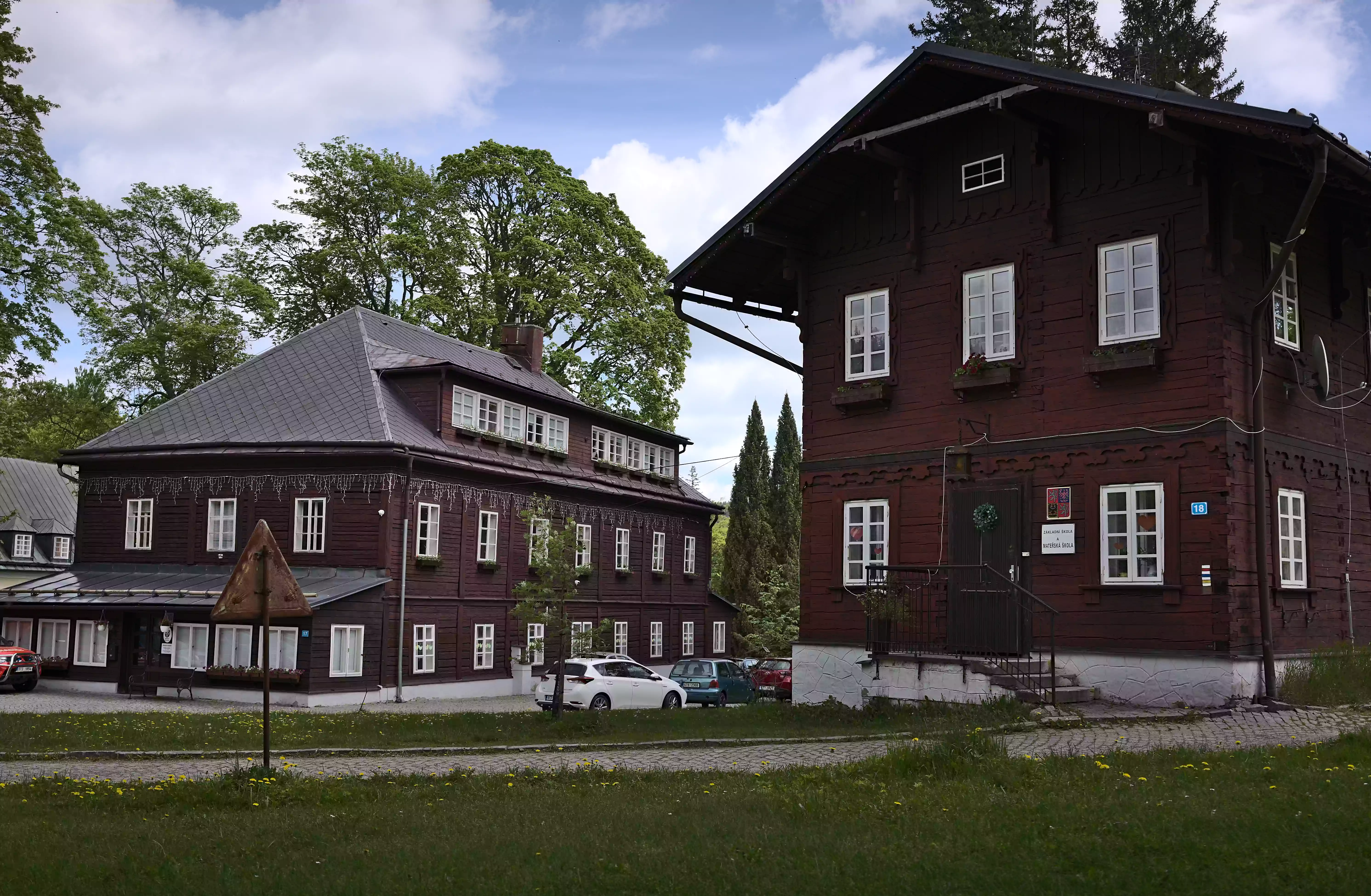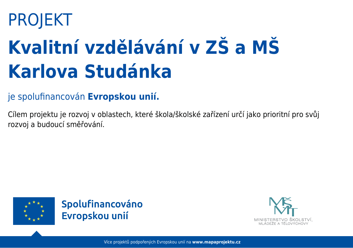 Naši školu najdete v malebné horské lázeňské obci Karlova Studánka, ležící v hlubokém údolí řeky Bílé Opavy na úpatí Pradědu, nejvyšší hory Jeseníků. Základní škola je umístěna společně s Obecním úřadem Karlova Studánka v bývalé lázeňské budově (původně Pruský dům), vystavěné v samotném centru lázní již v roce 1824. Prostory školy prošly v posledních letech celkovou rekonstrukcí a poskytují žákům atypické, útulné a moderní podmínky k výuce. Stejně zrenovované a téměř rodinné prostředí je vytvořeno pro děti mateřské školy, která je umístěna v protilehlé budově. Oba tyto historické objekty spadají do památkové péče. K výuce venku slouží terasa před budovou základní školy, ke sportování a hrám mají děti k dispozici nově vybudované hřiště. Počet obyvatel Karlovy Studánky je nevysoký, což se samozřejmě odráží i na nízkém počtu dětí v naší škole, a proto rádi přijímáme i děti z okolních obcí. Díky dobrému autobusovému spojení i přizpůsobení školních a mimoškolních aktivit není dojíždění problémem, takže je mezi námi až 50 % dojíždějících dětí. Základní škola je určena pro žáky 1. – 5. ročníku. Organizace výuky je málotřídní, to znamená, že ve dvou třídách spojujeme 2 – 3 ročníky. Žáci si rychle zvyknou na střídání přímého působení učitele a naučí se brzy samostatné i skupinové práci. Na jednu třídu připadá průměrně 12 žáků. Mateřská škola přijímá děti ve věku od 3 do 6 let, počet zapsaných dětí je maximálně 20. Díky malému kolektivu můžeme všem dětem poskytnout opravdu důsledný individuální přístup, vytvoření přátelské atmosféry, časté využívání netradičních forem práce i výuku mimo budovu uprostřed přírody. Naším specifikem je i poskytování kvalifikované pomoci integrovaným žákům.